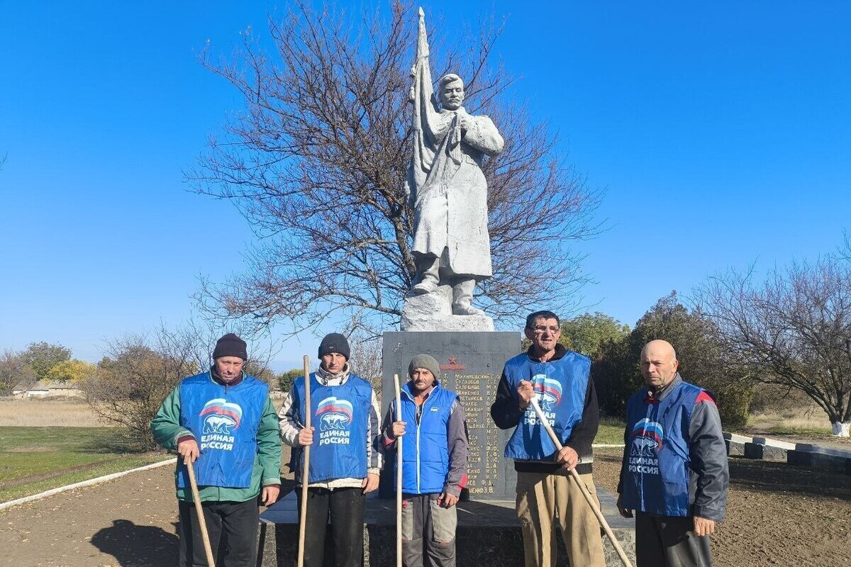 В Константиновке Херсонской области провели акцию по уборке территории памятника и подготовке к зиме. Об этом сегодня, 24 октября, рассказали представители партии «Единая Россия».