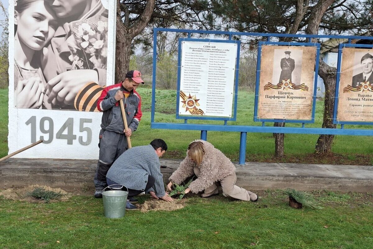 В селе Васильевка работники местных организаций высадили саженцы можжевельника, которые дополнили Аллею Славы героям Великой Отечественной войны.