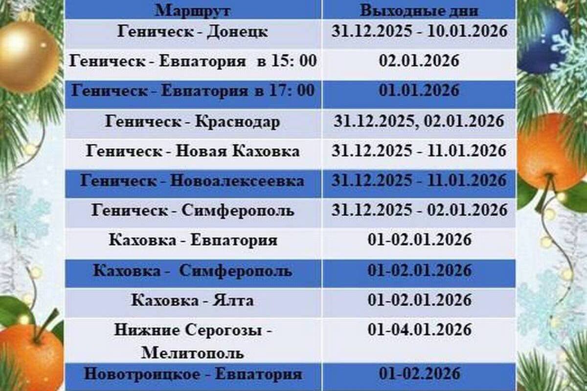 В Херсонской области в праздничные дни изменится расписание общественного транспорта. Об этом сегодня, 30 декабря, предупредили представители Министерства транспорта и развития транспортной инфраструктуры Херсонской области.